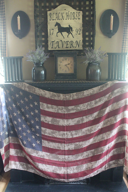Primitive Colonial Tea Stained American Flag Scarf 40"x72"