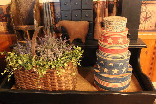 Primitive Americana Fabric Covered Pantry Stacking Boxes Set of 5