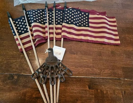 Americana Primitive Flag Wall Mount with 5 Tea Stained Flags