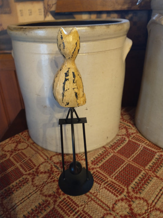 Primitive Folk Art Wooden Cat Tin Balance Toy Decor 11"