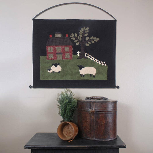 Primitive Colonial Sheep and Saltbox House Pennant 19.5"x16"