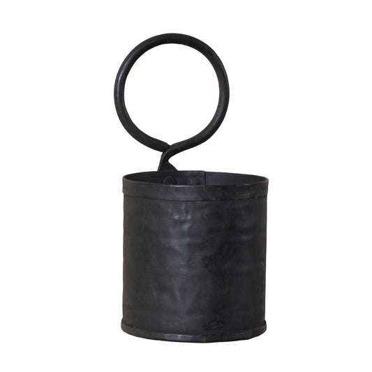 Primitive Rustic Iron Wall Hanging Pot, Black