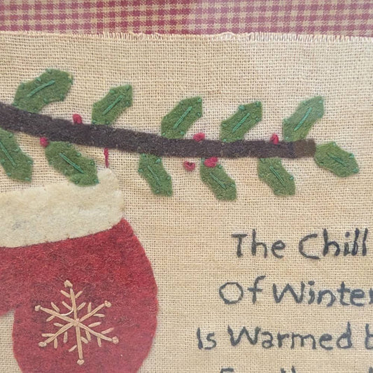 Primitive "Chill of Winter" Framed Stitchery 10.5"x 9"