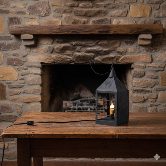 Primitive Colonial 9-Inch Revere Punched Tin Lantern Black