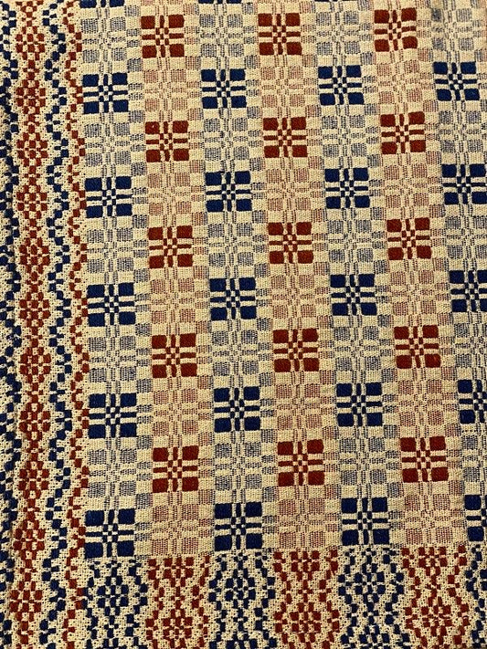 Primitive Marshfield Coverlet Short Table Runner. Red/Tan 14"x36"