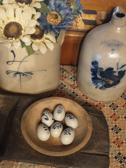 Faux Saltglazed Stoneware Wooden Eggs Set/6