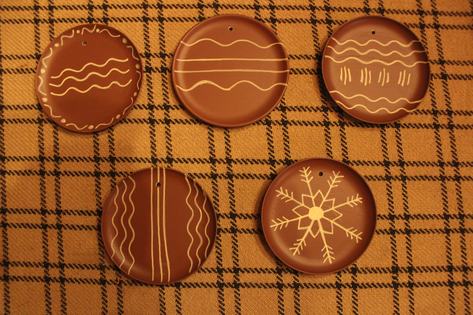 Primitive Faux Redware Plate Ornaments 3 1/4" Set of 5 (Group # 2)