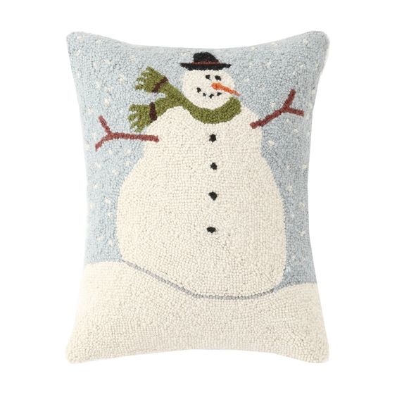 Primitive Snowman Wool Hooked Pillow 14"x18"
